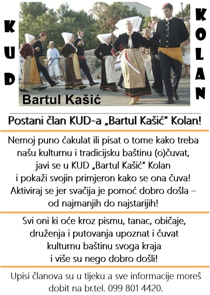 Prijavite se i postanite članovi Kulturne umjetničke družine "Bartul Kašić" iz Kolana.