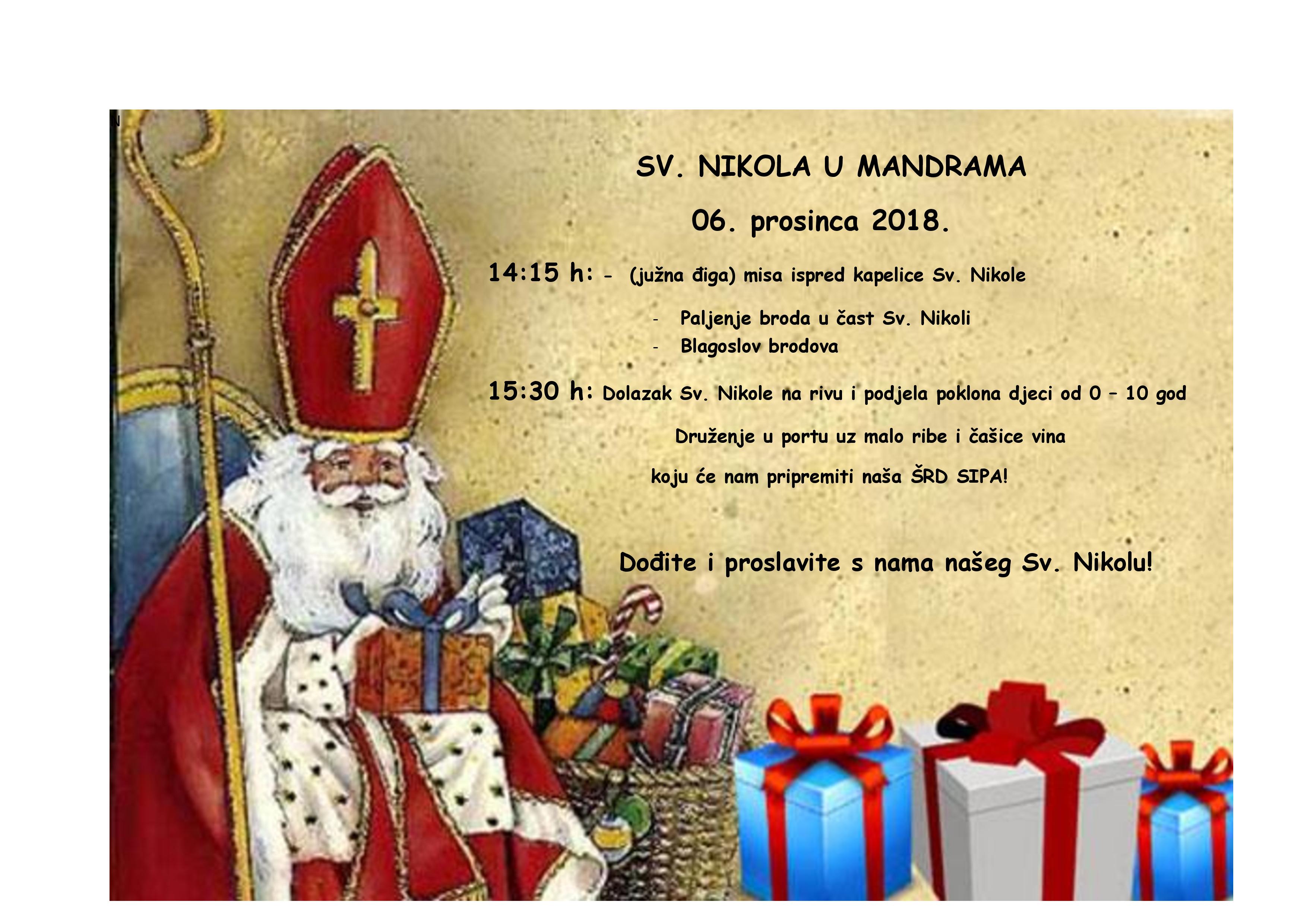 Dođite i proslavite s nama blagdan Sv. Nikole u Mandrama, 6. prosinca 2018