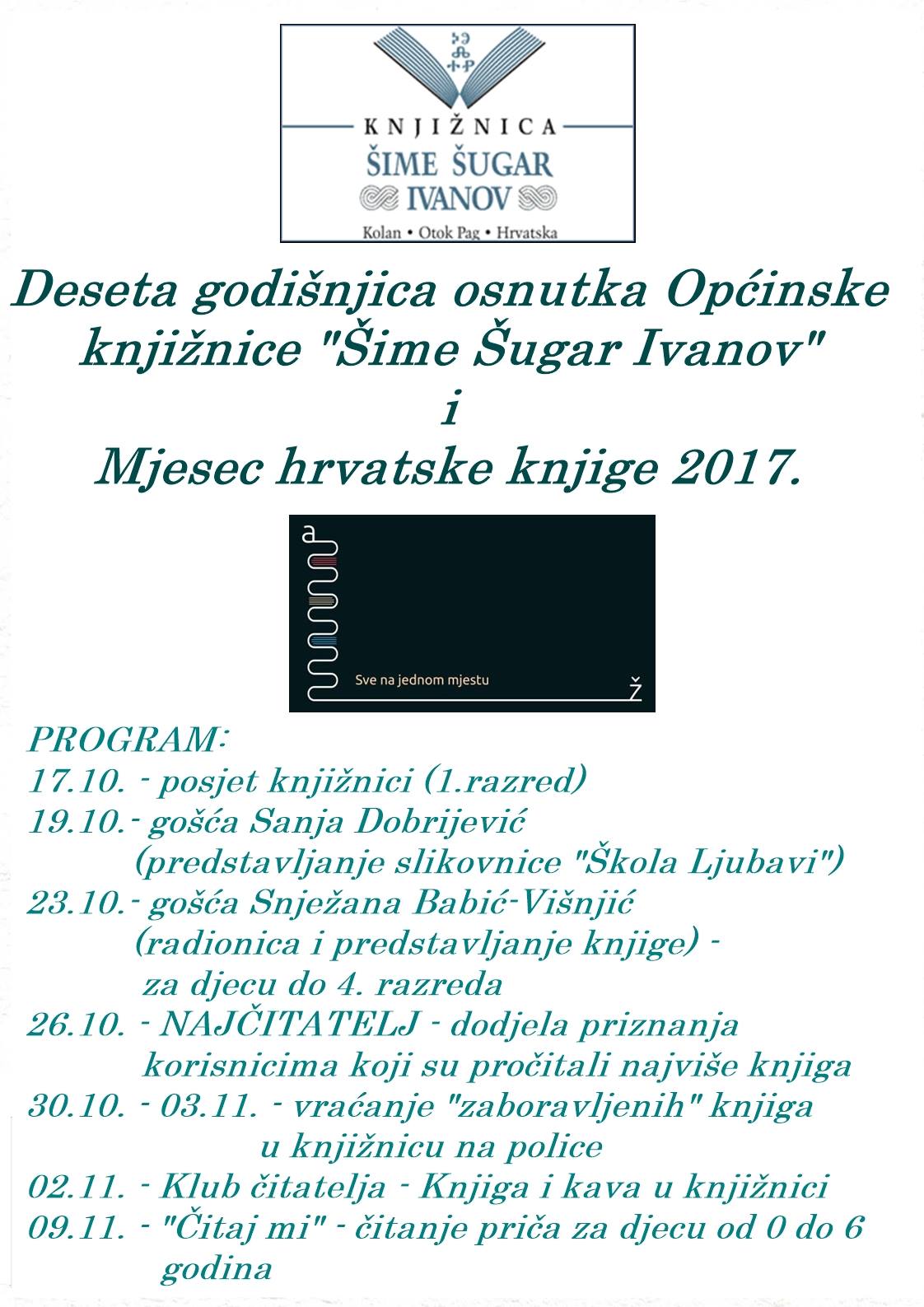 Povodom desete godišnjice osnutka Općinske knjižnice "Šime Šugar Ivanov" i Mjeseca hrvatske knjige 2017 knjižnica Šime Šugar Ivanov organizira nekoliko događanja